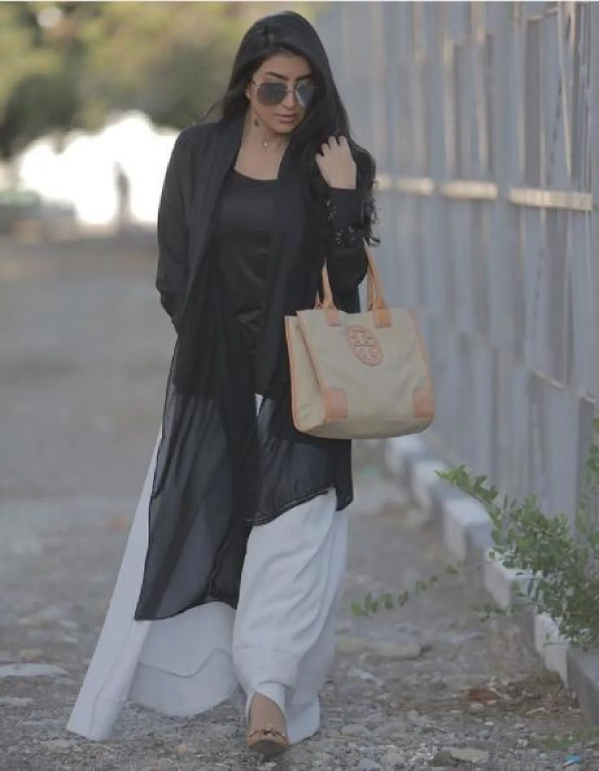 ففي الاطلالات الكاجوال تختار تحت العبايه بناطيل الجينز مع الأحذية الرياضية، وحقائب اليد الكبيرة.
