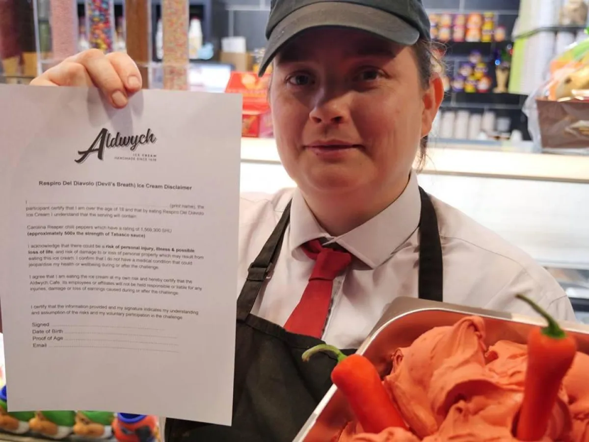 الغريب أن هذا الـ"آيس كريم" الخطير، والذي اخترعته صاحبة إحدى المقاهي في المدينة وتدعى مارتن باندوني، تم ابتكاره بمناسبة عيد الحب الـ"فالنتاين"، والذي يوافق الرابع عشر من شهر شباط/ فبراير من كل عام، حيث أطلقت باندوني على هذا الآيس كريم اسم "إیل ریسبیرو دیل دیافولو"، لكنها اشترطت على زبائنها حتى يتمكنوا من تذوقه أن يكونوا قد تجاوزا عمر الـ 18 عاماً، وأن يوقعوا على تعهد بإخلاء مسؤوليتها عن أي ضرر قد يُصيبهم، وأن يتحملوا هم المسؤولية كاملةً.