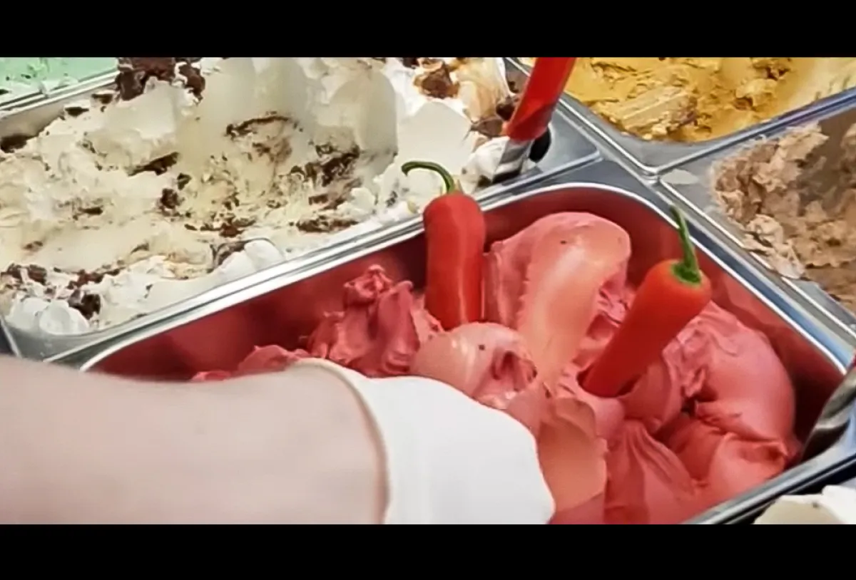 ومن الجدير بالذكر، أن هذا الآيس كريم، يتم صنعه من نوع معين من الفلفل الحار يدعى "تشيليس"، وهو بحسب موسوعة "غينيس" للأرقام القياسية، أحد أكثر أنواع الفلفل حرارة، حيث تصل درجة حرارته على مقیاس "سكوفیل" الخاص بالبھارات إلى 300،1569 درجة.