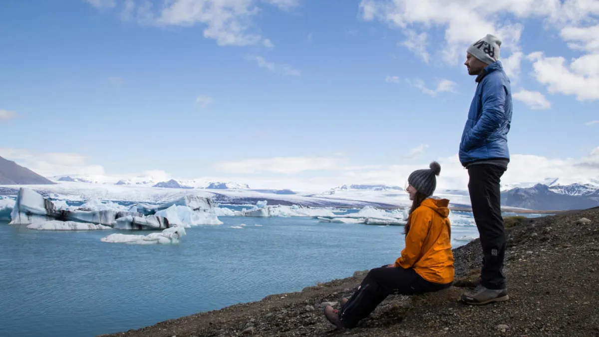 يحلو استكشاف أيسلندا برفقة الشريك، من خلال زيارة النهر وكهف الجليد، مع البقاء حتى وقت مُتأخِّر لرؤية الشفق القطبي الشمالي.