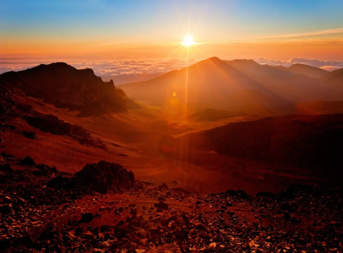 عند زيارة هاواي، يُنصح بالاستمتاع بتجربة رومانسيَّة أثناء مُراقبة شروق الشمس في حديقة "هاليكاي" الوطنية، حيث يُضيء مزيج اللون الذهبي والبرتقالي الحفرة البركانيَّة.