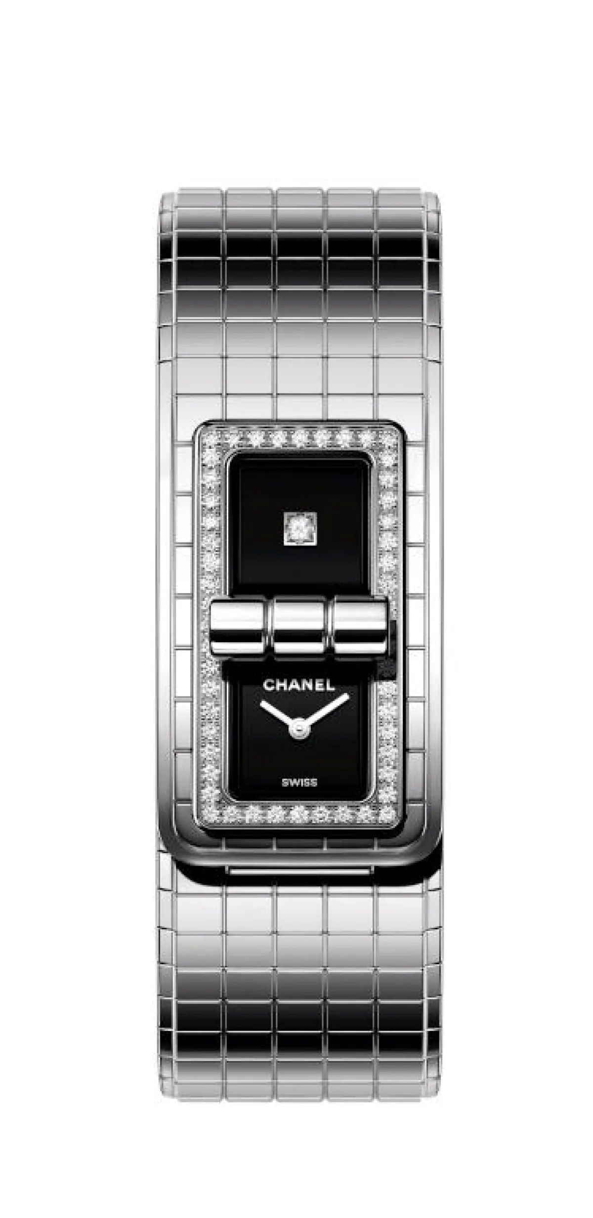 تتغلق ساعة CODE COCO بنقرة، تماما مثل حقيبة 2.55 المبطّنة والتي ابتكرتها مادوموازيل شانيل في فبراير 1955. ويأتي مشبك الحقيبة لتزيين قلب ميناء الساعة. وسواء كانت مفتوحة أم مغلقة، تُخفي أو تكشف عن الوقت المخبأ هناك بشكلٍ رصين. وإنّ الوقت بنفسه سرّ يجب حمايته. تضمّ الساعة حجر ألماس يلمع بإرهاف على ميناء باللون الأسود، ما يدلّ إلى الترف. أمّا سوارها المرهف، هو الخفيف لدرجة تموّجه لأقلّ حركة، فيستذكر بداية هذا التصميم المبطّن. تُشكّل ساعة CODE COCO إشادة لقصّة وأسلوب وإطلالة، وهي تحمل الرموز الدائمة التجدد من شانيل CHANEL.