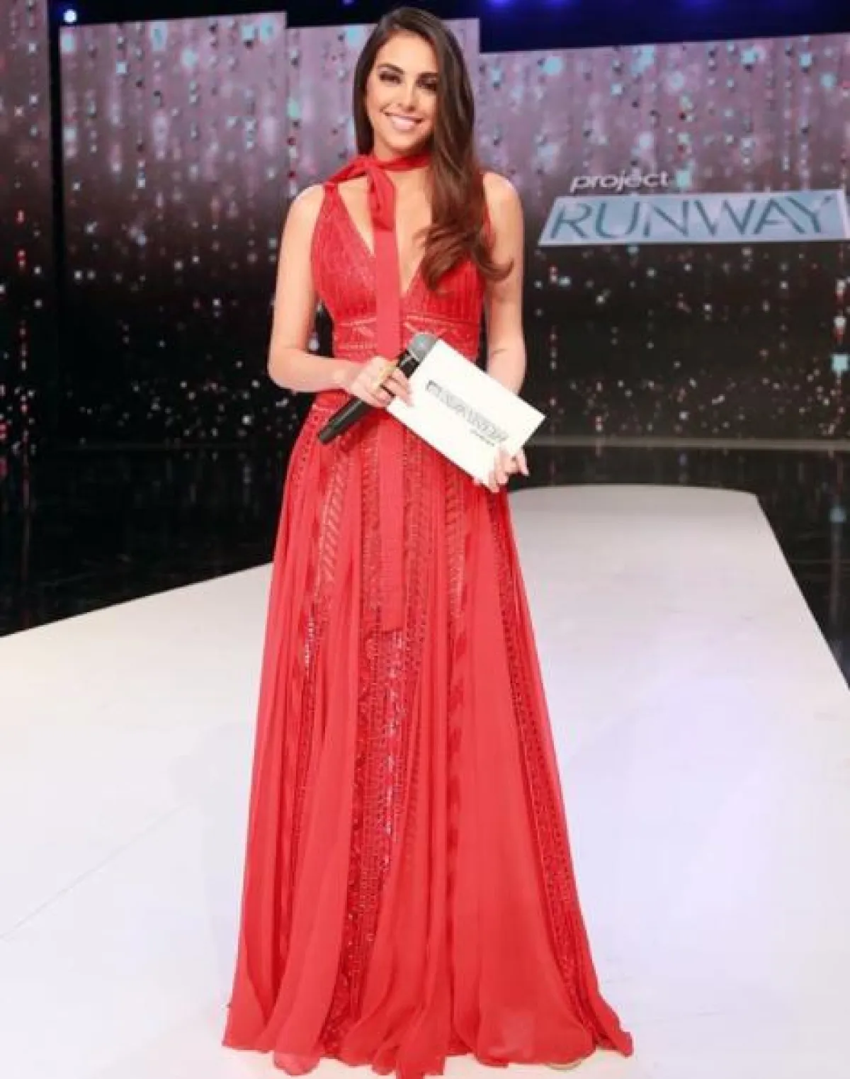 ومن بين الاطلالات التي لفتتنا أيضًا، كانت لملكة جمال لبنان السابقة فاليري أبو شقرا في الحلقة الأخيرة من برنامج "بروجيكت رانوي" Project Runway، حيث اختارت فستانًا أحمر مميزًا من مجموعة "إيلي صعب" Elie Saab.
