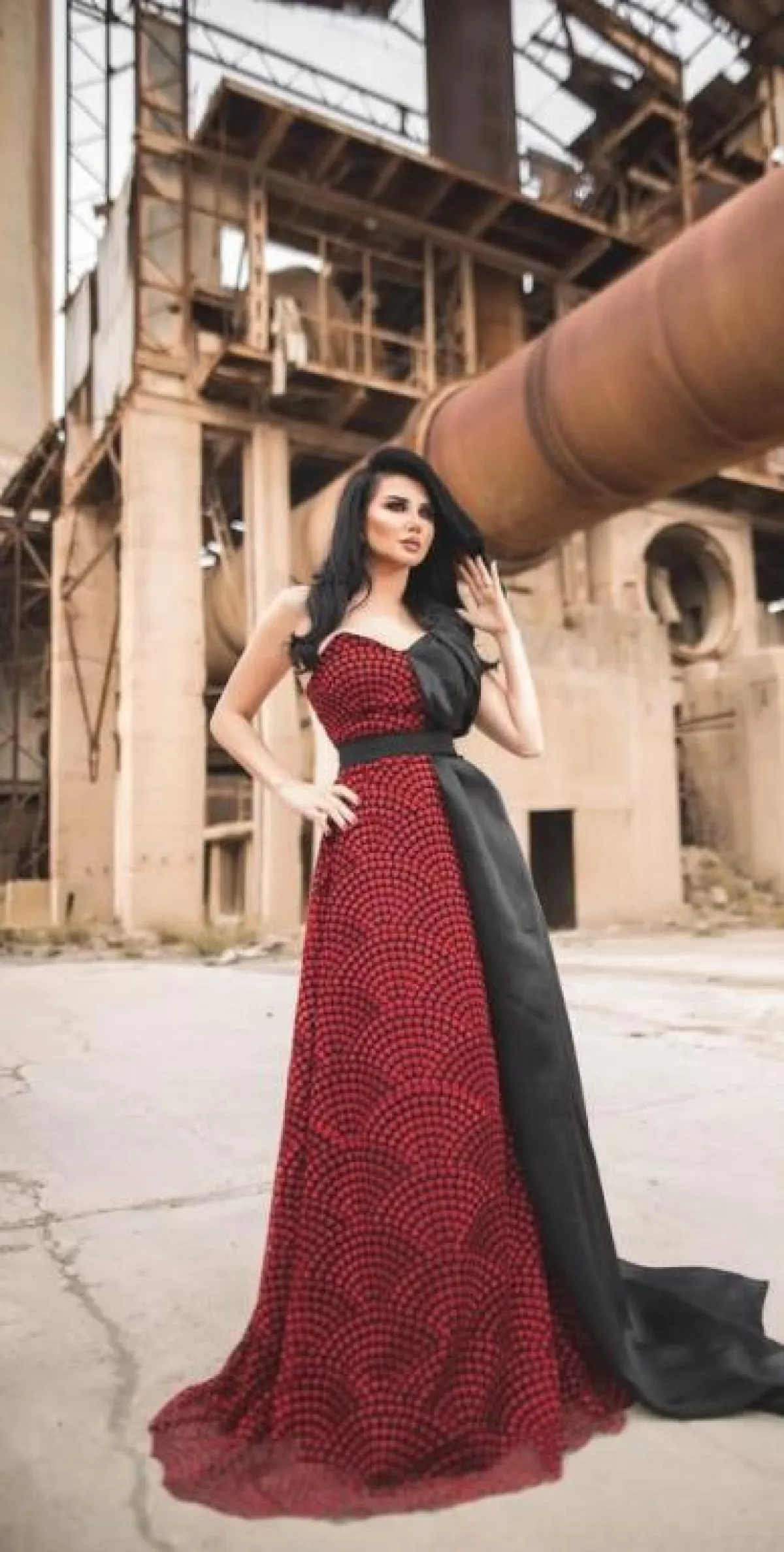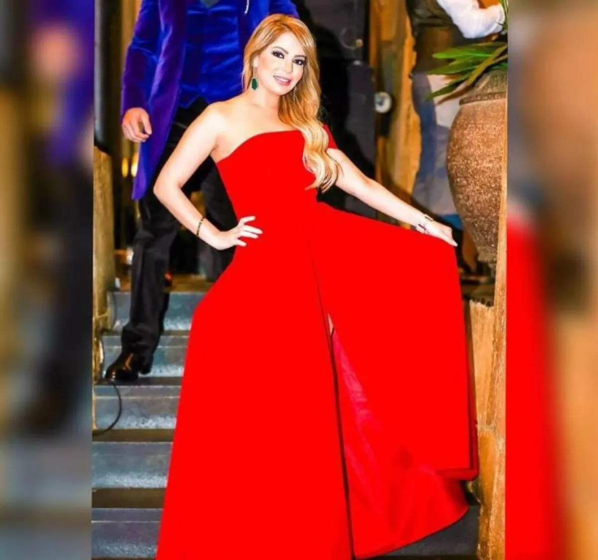 -أما النجمة جيني إسبر فاختارت الإطلالة بفستانين في المناسبة مزجت فيهما بين اللونين الأحمر والأسود ووجهت معايدة لمتابعيها بهذا اليوم .