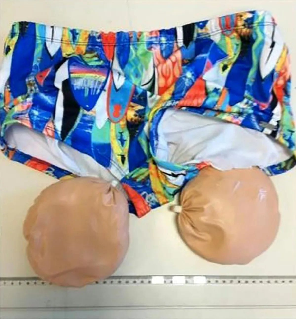 وذكرت صحيفة "بوبليكو" ووسائل اعلام برتغالية اخرى ان الراكب الاتي من بيليم (شمال البرازيل) كان يرتدي تحت سروال السباحة "مؤخرة مزيفة" تحوي الكوكايين. وقد ابتلع ايضا اكياسا صغيرة تحوي الكوكايين على ما ذكرت المصادر نفسها.