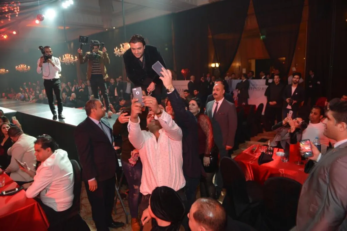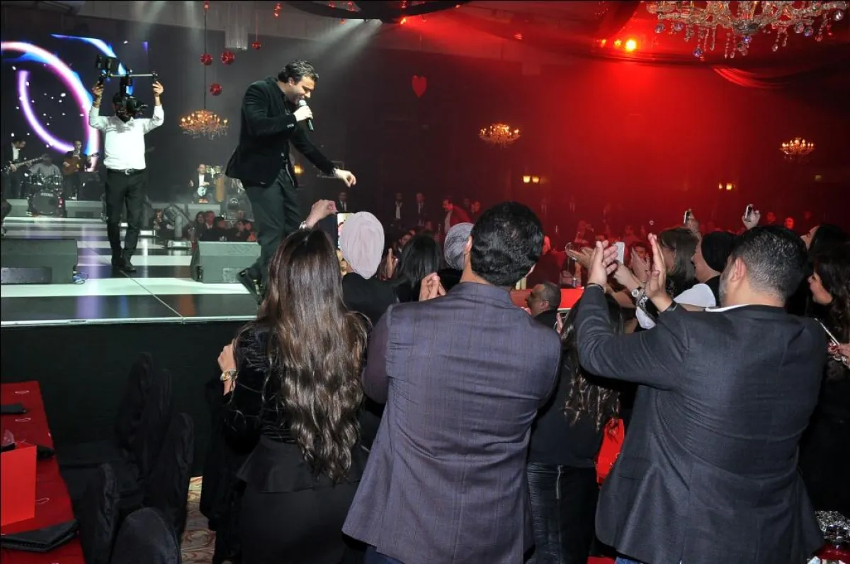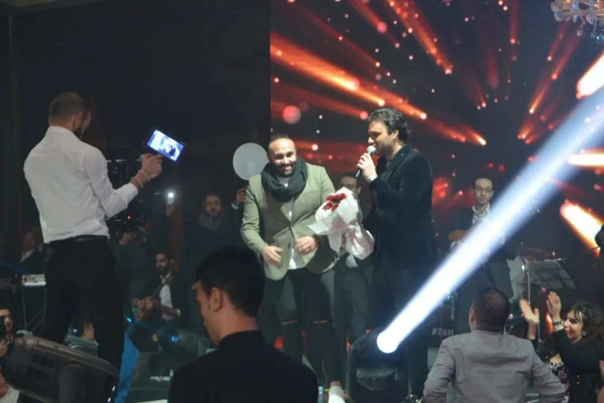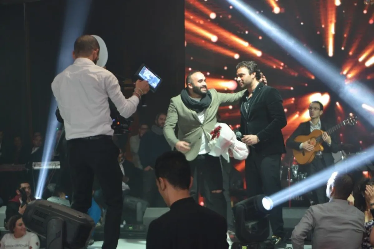 وقد احتفل الفنان الشاب مع جمهوره بأغنيات رومانسية إلى جانب باقات الورد التي أهداها له بعض الحضور والتقط العديد من الصور السيلفي بواسطة كاميرات المعجبين أثناء تواجده على المسرح.