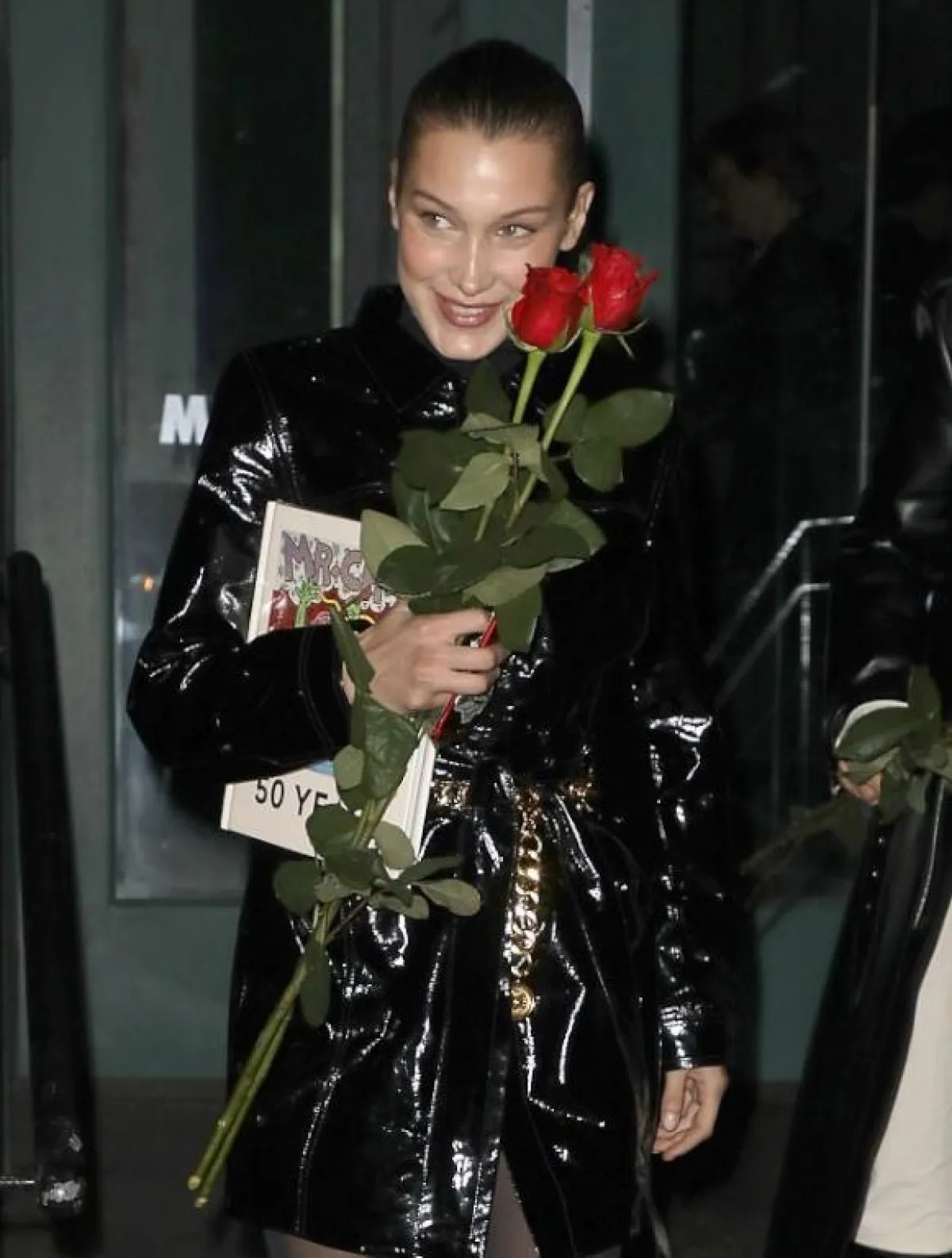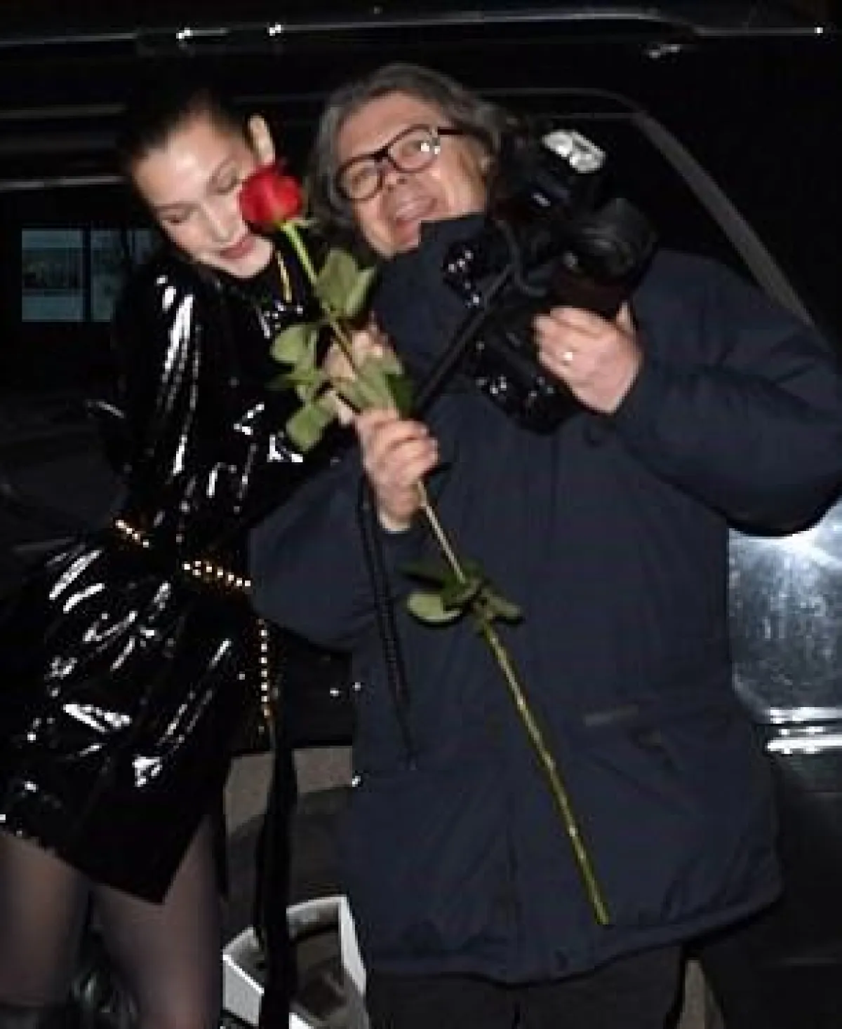وعندما شاهدت بيلا مصوري الباباراتزي خارج المطعم، قدّمت لهم الورود والتقطت الصور معهم أيضًا، احتفالًا بعيد الحب.