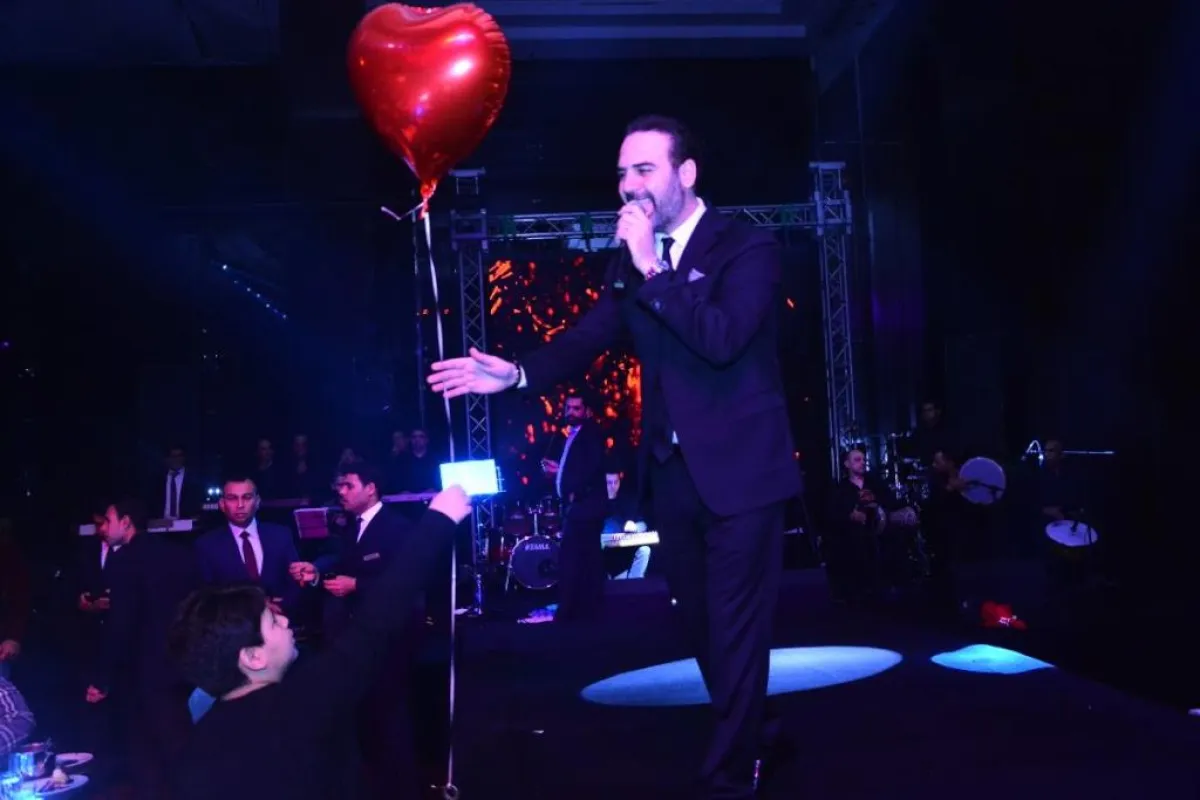 فقد فوجىء بباقة من الورود أرسلتها زوجته من لبنان، لعدم قدرتها على التواجد معه في الحفل، فاختارت أن تحتفل معه بيوم الحب بهذه الطريقة، فوجه لها التحية أثناء وجوده على المسرح .