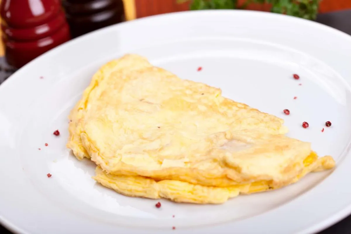 | بياض البيض (العجَّة المصنوعة من بياض البيض)، مع الجبن منخفض السعرات الحراريَّة والخضراوات الطازجة.