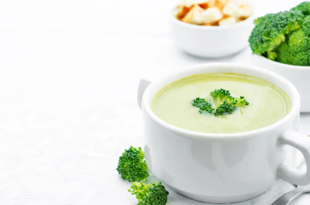 | الحساء المصنوع من الخضراوات الخضراء والبيضاء سالفة الذكر، مع إضافة مرق الدجاج الخالي من الدهون إليه.
