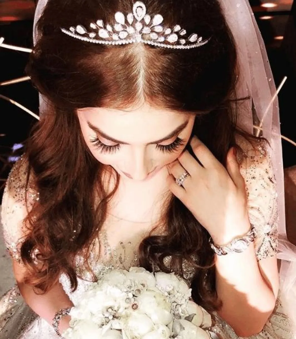 واختارت العروس خاتمها المرصع بحبة ألماس من 2 قيراط من josephinealgerite، حيث بلغ ثمنه 512 ألف درهم، كما وصل ثمن أقراطها إلى 137 ألف درهم.