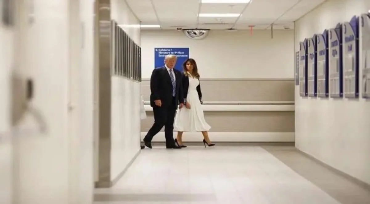 أفادت وكالة الصحافة الفرنسية بأن السيدة الأمريكية الأولى «ميلانيا ترامب» لم ترافق زوجها على متن مروحية إلى قاعدة «أندروز» الجوية؛ تجنبًا للقاء الصحافيين.