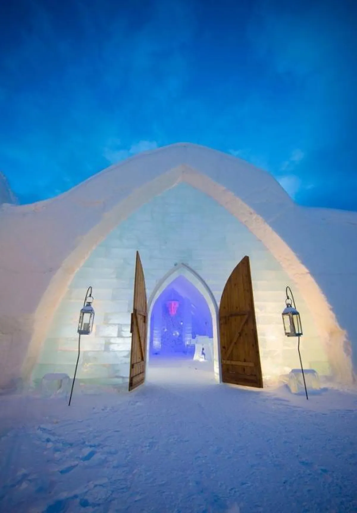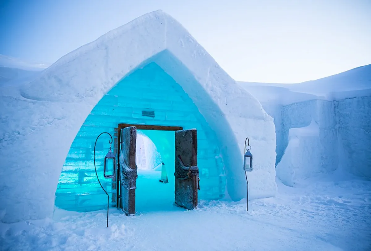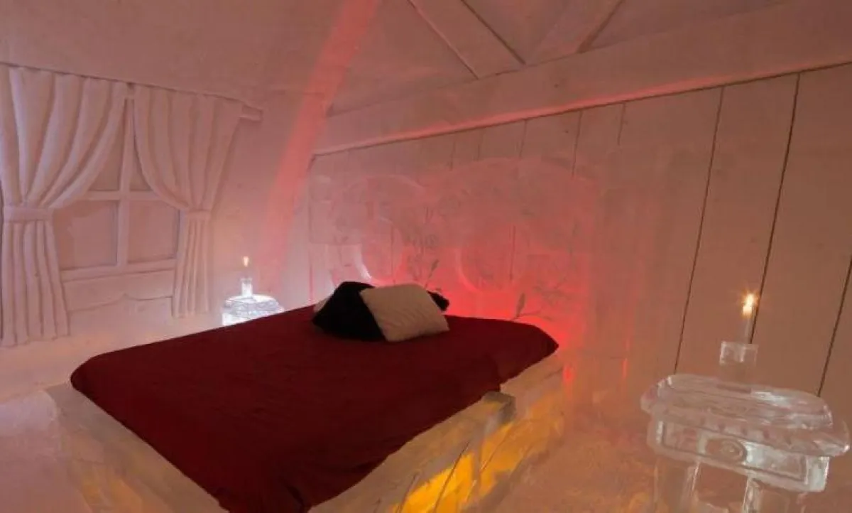 1. يمتدُّ "فندق الثلج" على مساحة 2.973 مترًا مربعًا، وهو يحوي غرفًا وأجنحةً مؤثَّثةً بأثاث مصنوع من الجليد، لا سيَّما الأسرَّة المُزوَّدة بقواعد خشب صلبة وأفرشة مريحة.