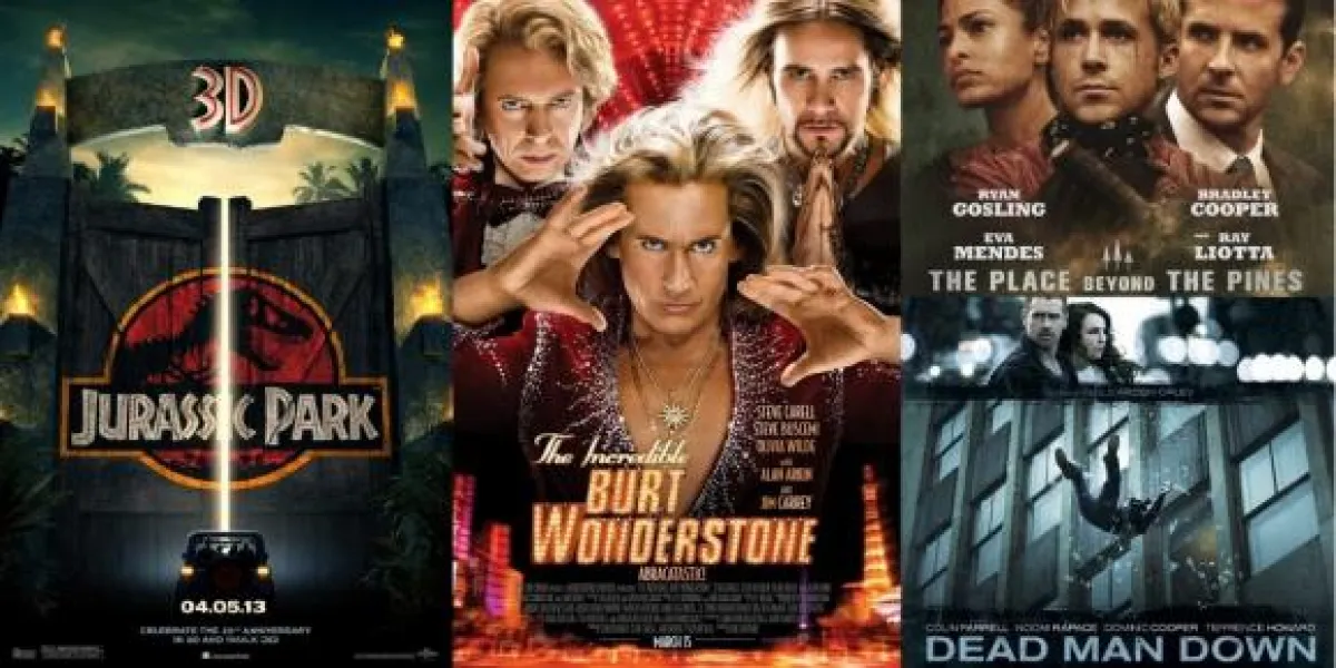 محبو السينما هم على موعد هذا الأسبوع في الصالات العربية مع المغامرات مع Jurassic Park 3D و الكوميديا مع The Incredible Burt Wonderstoneو الدراما مع The Place Beyond the Pines والتشويق مع Dead Man Down. في ما يلي لمحة سريعة عن هذه الأفلام.