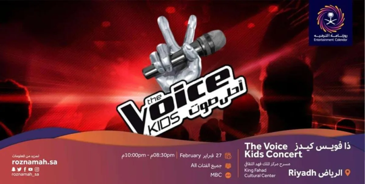 أعلنت هيئة الترفيه السعودية عن أول حفل غنائي مباشر لنجوم برنامج المواهب الجماهيري بنسخته العربية " the voice kids".