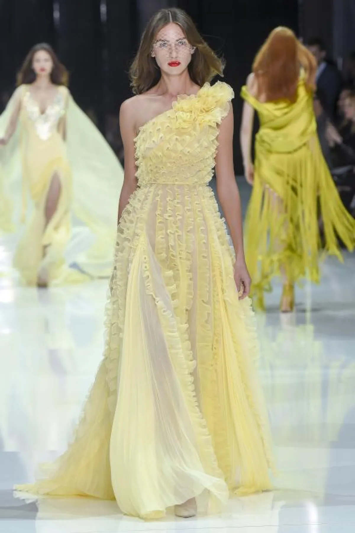 اختار العديد من أهم دور الأزياء إدخال الألوان المنعشة والفرِحة، إلى مجموعاتهم الخاصة بفساتين السهرة والهوت كوتور لموسم ربيع وصيف 2018، ومن بين هذه الألوان، الأصفر الذي يضفي على اطلالتكِ لمسة منعشة وفرحة.