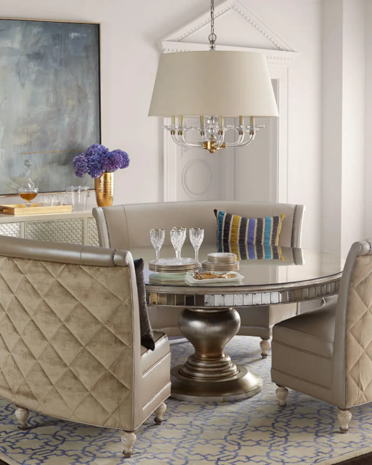 الأريكة المُبطَّنة (كابيتونيه) تعطي ركن السفرة لمسة من الفخامة