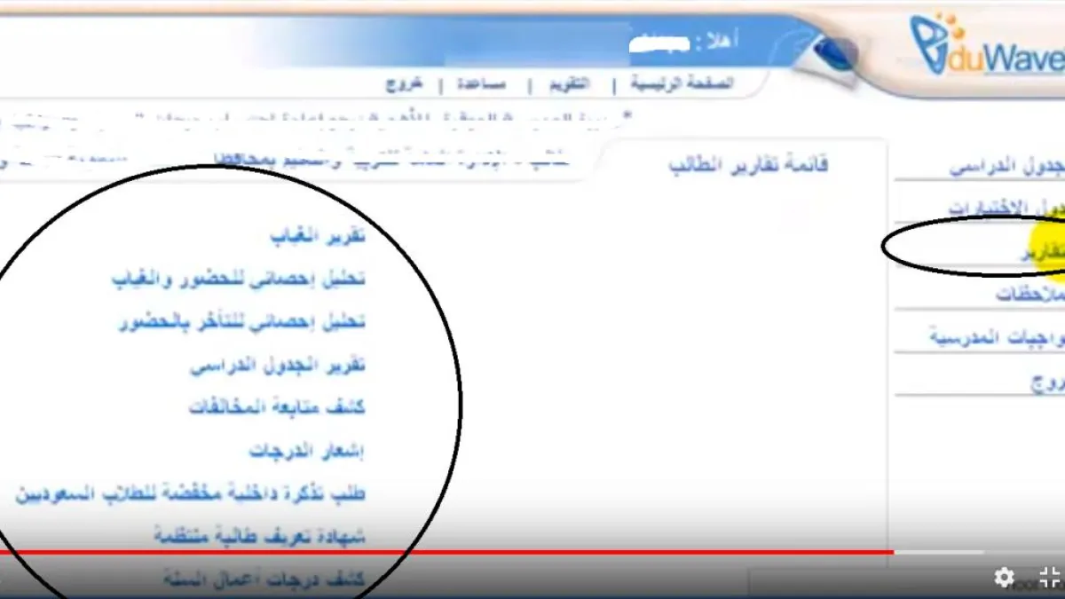 3. بعد ذلك سيأتيك عدد من الخانات على يمين الشاشة فيها كلمة "تقارير"، قم بالضغط عليها، ومن ثم ستأتيك خانات أخرى وسط الشاشة، قم بالضغط على التقارير التي تريد الاستعلام عنها، وهي كالتالي: