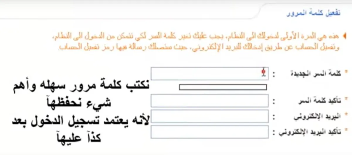 2. سيتم تحويلك إلى صفحة جديدة، تقوم بإدخال كلمة سر جديدة، والبريد الإلكتروني، ورقم الجوال. قم بتعبئتها، ثم اختر موافق.