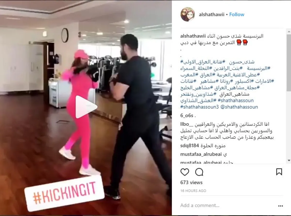 المطربة شذى حسون أشعلت موقع إنستقرام بأحدث فيديوهاتها والتي تظهر فيها بملابس رياضية أثناء تدريبها على"الكيك بوكس".