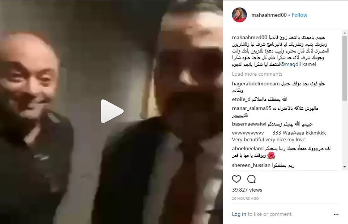 تقدمت الفنانة مها أحمد بالشكر لزوجها الفنان مجدي كامل بعد أن فاجأها بحضوره أولى حلقات برنامجها الجديد "الست هانم"، الذي يعرض على شاشة القناة الأولى المصرية، ونشرت مها، عبر حسابها على موقع إنستقرام، مقطع فيديو للحظة دخول مجدي كامل عليها الاستوديو معلقة عليها "حبيبى يا مجدى يا أعظم زوج فى الدنيا وجودك جنبى وتشريفك ليا فالبرنامج شرف ليا وللتليفزيون المصرى لأنك فنان محترم ولبيت دعوة تليفزيون بلدك، وأنت وجودك شرف لأى حد شكرا على كل حاجة حلوة شكرا لدعمك ليا شكرا يا نجم النجوم".