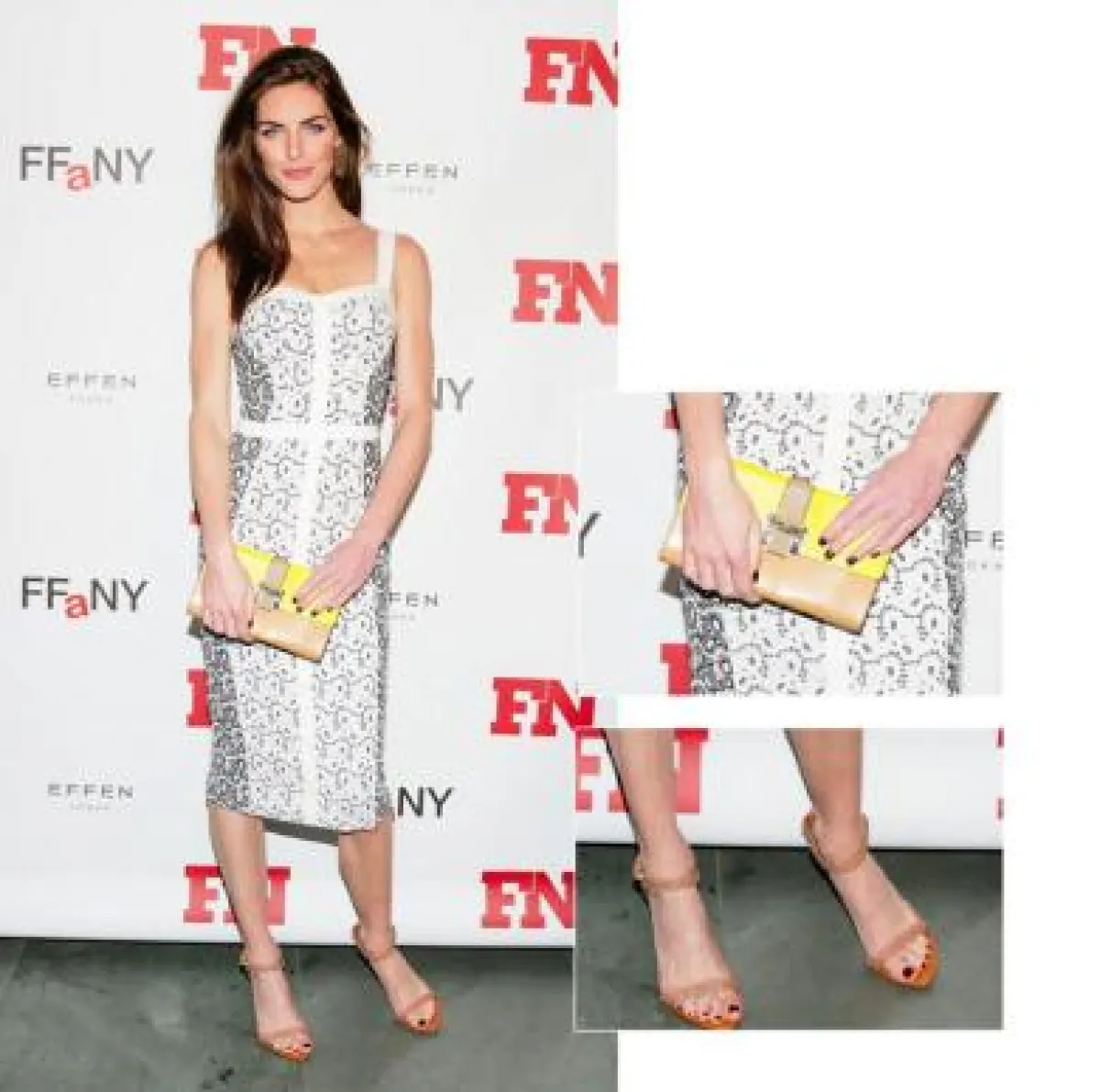 ستايسي كيبلير صديقة الممثل الشهير جورج كلوني اختارت أن تنسّق فستانها مع صندل ناعم باللون اللحمي. هيلاري رودا اعتمدت الصندل اللحمي كذلك ولكنها أضافت لإطلالتها حقيبة صغيرة بلون مشرق وجميل. أما النجمة آشلي تيسديل فقد اعتمدت الحذاء الأسود لترتديه مع هذا الفستان.