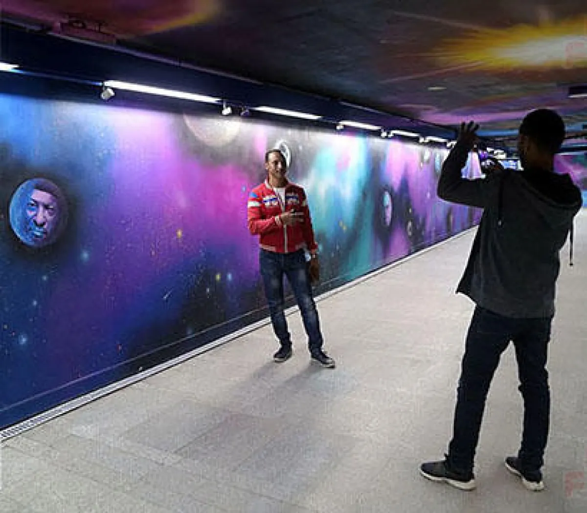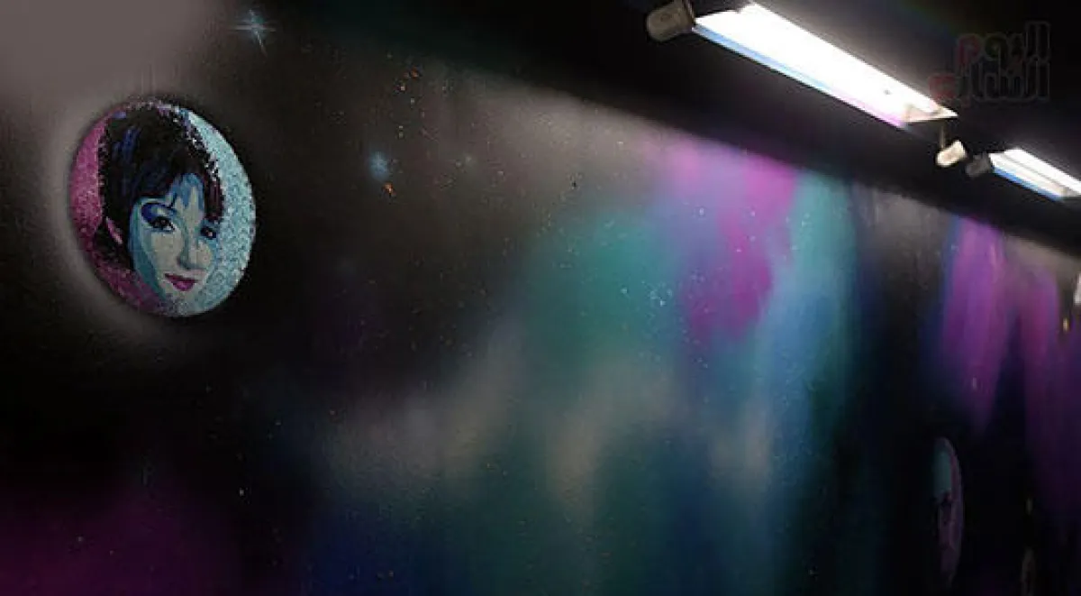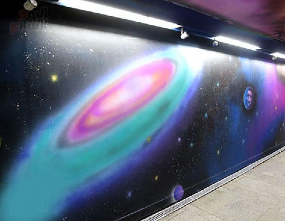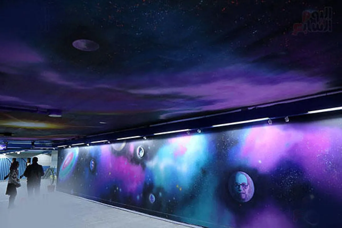 ورسم شباب "المبدعون" بالمحطة، مجموعة من اللوحات الملونة والتي تشبه الفضاء، مصحوبة ببعض صور فناني الزمن الجميل، مثل: شادية، وكوكب الشرق أم كلثوم، ونجيب الريحاني، وسيد مكاوي، وذلك دعمًا لظهور محطات المترو بشكل حضاري.