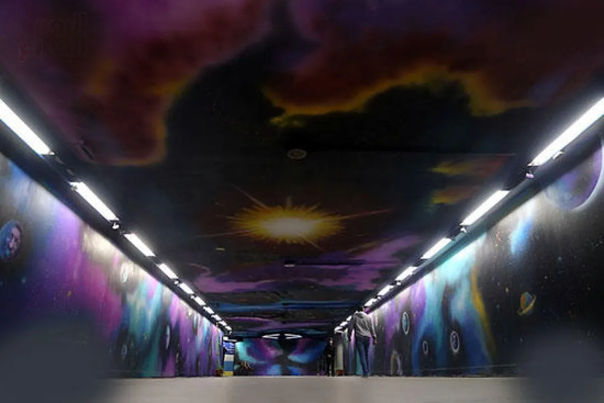 انتهت مجموعة من شباب كلية الفنون الجميلة "مبدعون"، من مشروع تجميل بعض الممرات والجدران بمحطة مترو أنفاق الأوبرا، والذي تم التنسيق فيه بين هيئة مترو الأنفاق بمصر، والكلية، حيث نفذه الطلاب تحت عنوان "تيجي نلوّنها" بالتعاون مع شركة المترو من دون مقابل.