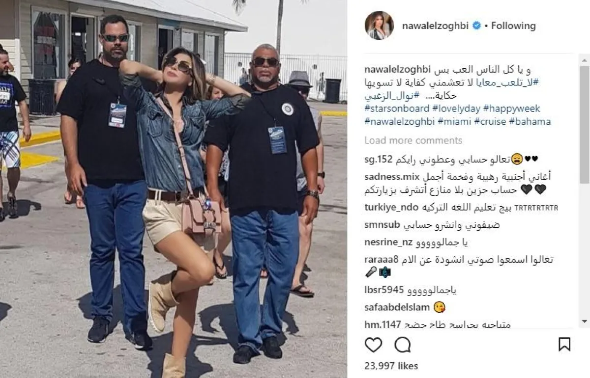 نوال الزغبي من جانبها أثارت الجدل بصورة لها وهي ترتدي ملابس صيفية عبارة عن هوت شورت وذلك في كواليس حفلها الأحدث الذي أقامته في الولايات المتحدة الأمريكية وفي الصورة تظهر نوال وهي تسير بصحبة عدد من الحراسات الشخصية التي لفتت أنظار جمهورها.