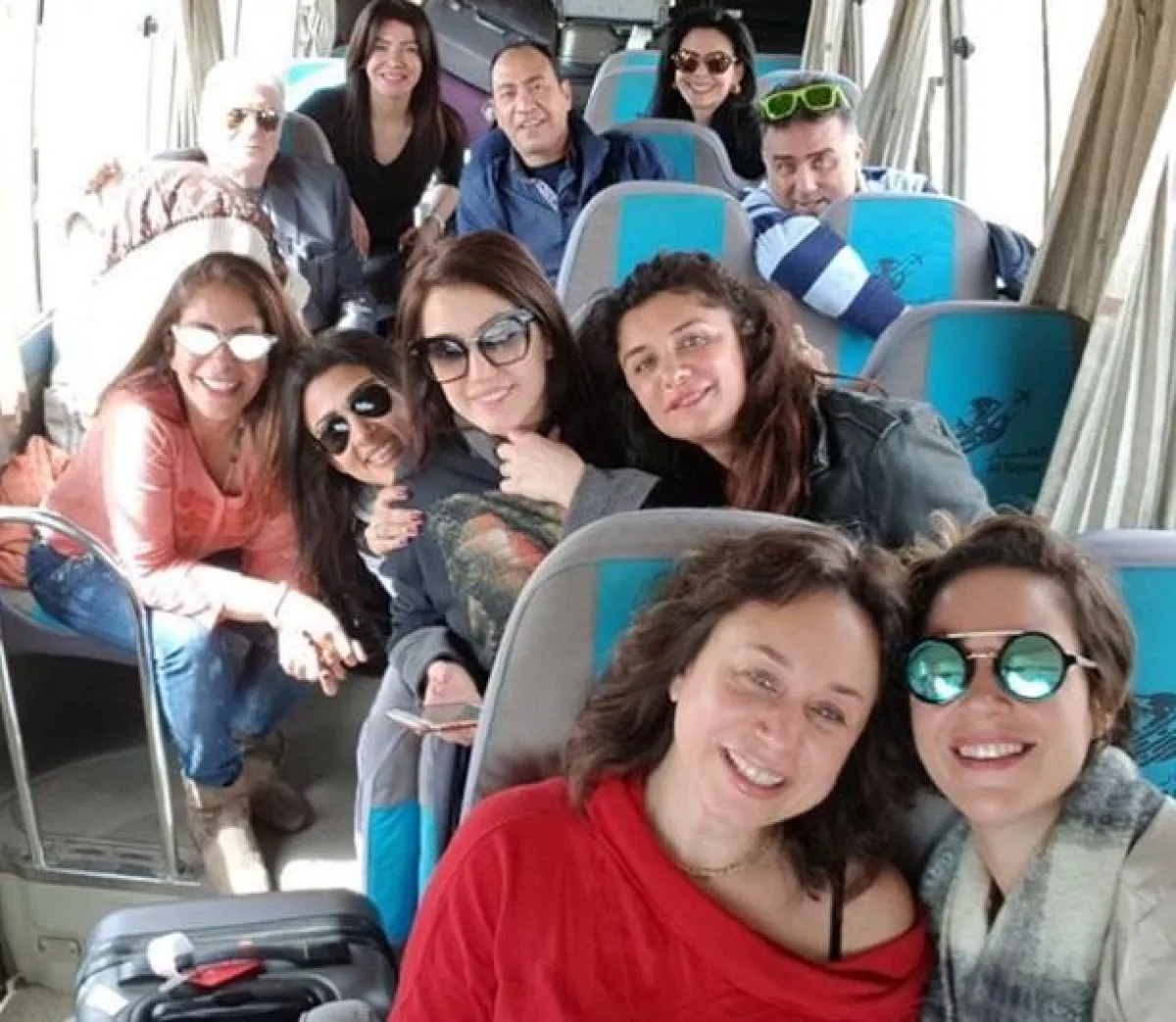 في الصورة يظهر تامر مع مجموعة من أصدقائه منهم غادة عادل و درة و منة شلبي والمخرج وائل احسان.