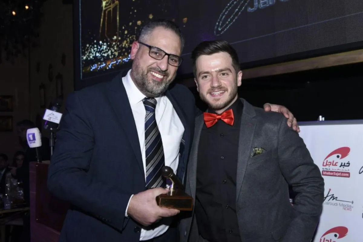 • الفنانة ناي سليمان والفنان إياد كرما (مراسل جارودي ميديا غروب واذاعة ارابيسك في سوريا أيهم غانم).