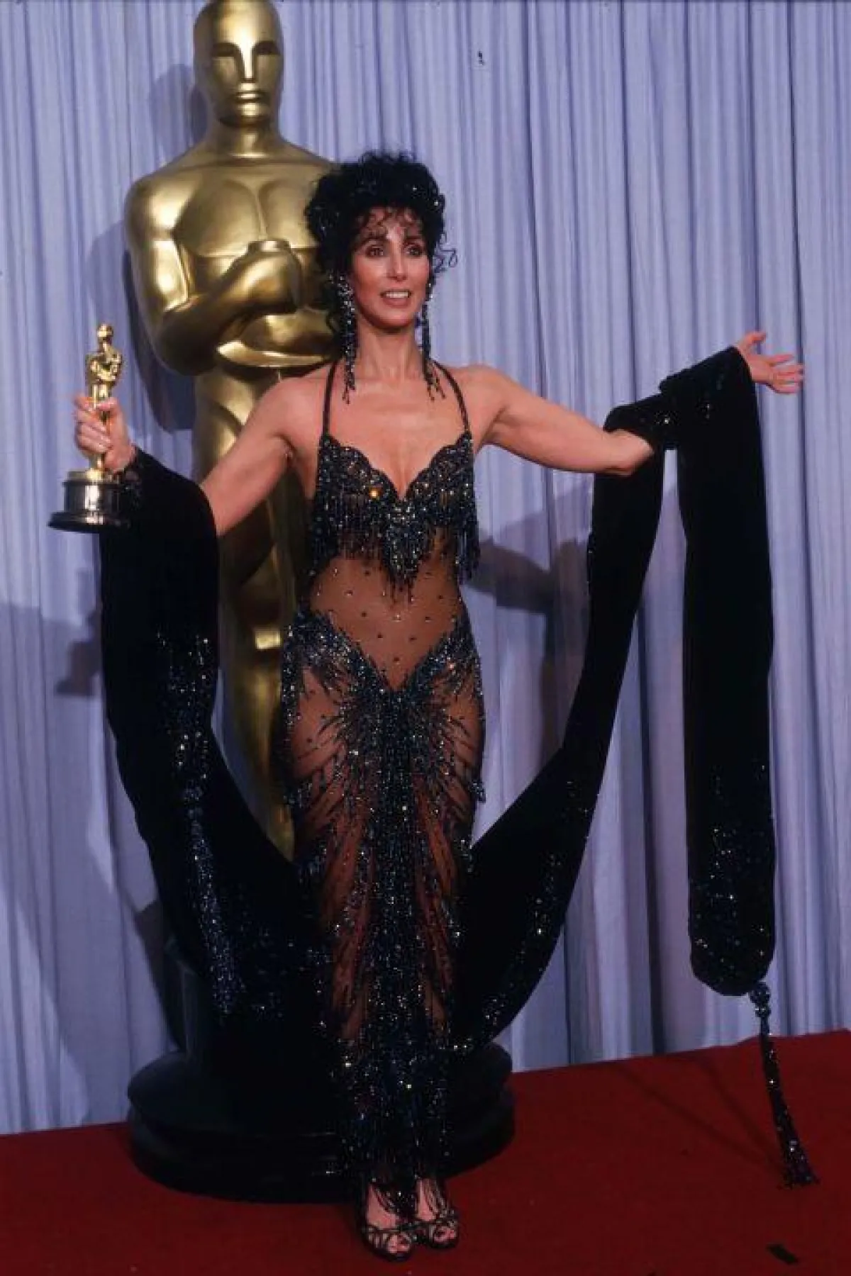 لاحظنا عبر السنوات بعض الخيارات الجريئة من قبل النجمات على السجادة الحمراء الخاصة بحفل الأوسكار، ومنها اطلالة “أنجلينا جولي” Angelina Jolie في فستان أسود من “فيرساتشي” Versace مع شق طويل على الساق، واطلالة “هيلاري سوانك” Hilary Swank في فستان أسود مكشوف الظهر عام 2005، واطلالة “شير” Cher في فستان من الشيفون الأسود المزين بالخرز عام 1988.