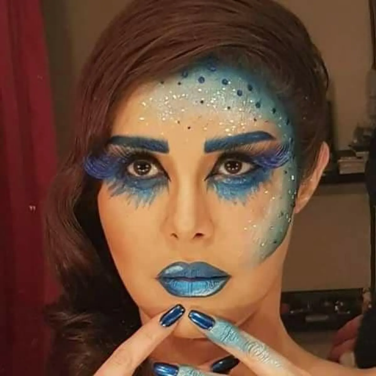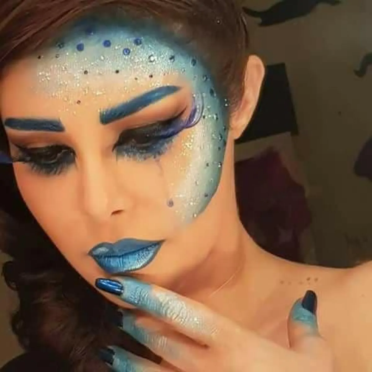 بدا واضحاً من التعليق ان المكياج تم بإشراف صديقتها المختصة بالمكياج الغريب .