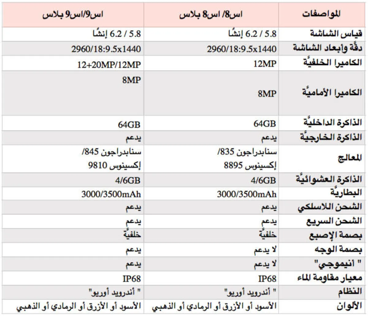 في الآتي لمحة عن "اس 9" و"اس 9 بلس"، ومُقارنة بـ"اس 8" و"اس 8 بلس":