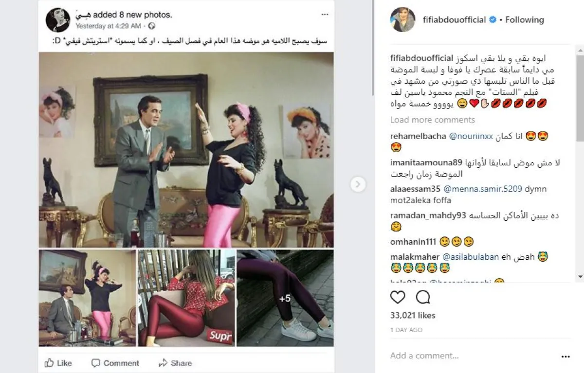 الفنانة الاستعراضية فيفي عبده، أكدت أنها سابقة عصرها في عالم الموضة، بعدما توقعت خبيرة أزياء أن يهيمن سروال ارتدته منذ سنوات طويلة على موضة صيف 2018 ونشرت عبر حسابها بموقع انستقرام صورة من أحد مشاهد أفلامها وهي ترتدي الاسترتش، في إشارة منها إلى تأكيدات انتشار موضة ارتداء اللاميه المشابه له بين الفتيات صيف العام الحالي.