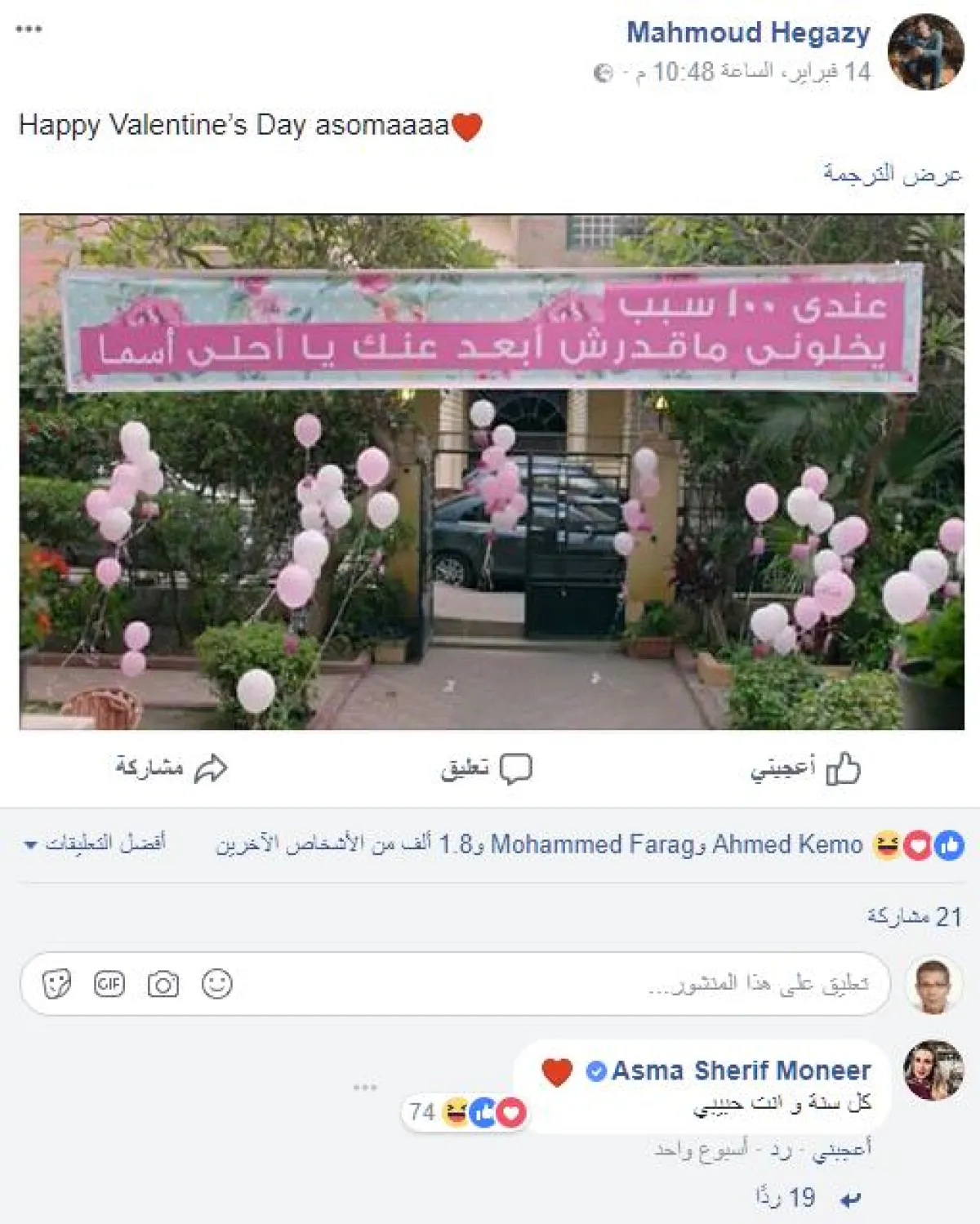 اللافت أنّ حجازي لا زال يحتفظ بحالته الاجتماعية كخاطب، ولكن من دون الإشارة للخطيبة أسماء شريف منير، واحتفظ بلافتة مقتبسة من مسلسله الذي يُعرض حاليًّا "أبو العروسة" مكتوب عليها عندي 100 سبب يخلّوني ما اقدرش أبعِد عنّك يا اسماء، وقد ردت وقتها بقولها :كل سنة وانت حبيبي!!