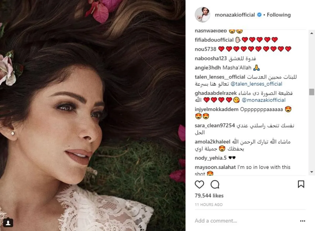 الفنانة المصرية منى زكي خضعت لجلسة تصوير رومانسية جدًّا، وبدأت في نشر حصادها تباعًا، ولكنّ الصورة الأخيرة خطفت الأنظار بخاصة وأنّ التعليق الأول كان للنجمة غادة عبد الرازق قائلة: فظيعة الصورة دي ما شاء الله"، بينما الراقصة والممثلة فيفي عبده وضعت خمسة قلوب حمراءـ فيما أبدت إنجي المقدّم دهشتها من جرأة الصورة قائلة: أوباااااا، مع تعليقات إعجاب أخرى من بوسي وأصالة.