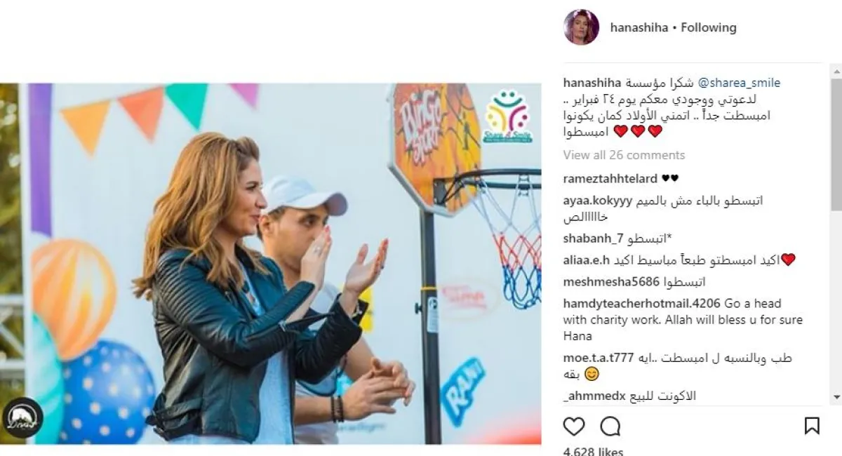 الفنانة هنا شيحة شاركت جمهورها على موقع انستقرام صورًا عدة تجمعها بعدد من الأطفال خلال حفل مؤسسة share a smile لإسعاد الأطفال الأيتام، الذي أقيم مؤخرًا، وعلّقت عليها قائلة: "شكرًا مؤسسة share a smile لدعوتي ووجودي معكم.. انبسطت جدًّا.. أتمنى الأولاد كمان يكونوا انبسطوا.