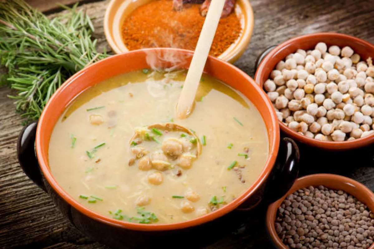 6- يخلط الدقيق مع الماء البارد، ويضاف إلى المرق.