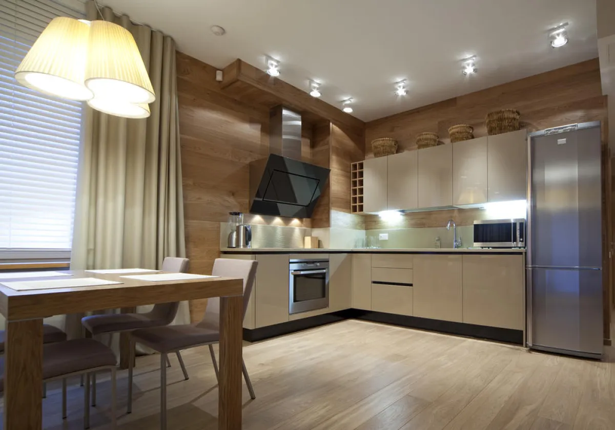 الإضاءة الصفراء تناسب المطابخ ذات الديكور الخشب