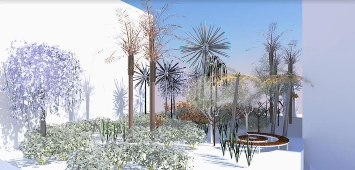 وسيحتوي تركيب الفنانتين اليعقوب وفريد، الذي يحمل اسم "الحياة المعاكسة: حديقة نباتية من الضوء مخصصة للأشجار"، على عدد من الأشجار الصناعية المضيئة، بالإضافة إلى أنواع نباتات أخرى مستوحاة من خيال الفنانتين، وسيُعرض التركيب الفني المبني على شرفة مرتفعة تربط بين جناحي مركز "جميل" للفنون، معلومات مفصلة عن النوع والمناخ لكل النباتات المستخدمه خلاله، في محاكاة للمشتل الحقيقي، وسوف تتلقى الفنانتين الفائزتين، ميزانية إنتاج تقدر بـ 70 ألف دولار لتنفيذ هذا العمل الفني، بالإضافة إلى دعم مقدم من الخبراء المعماريين والمهندسين والتقنيين.