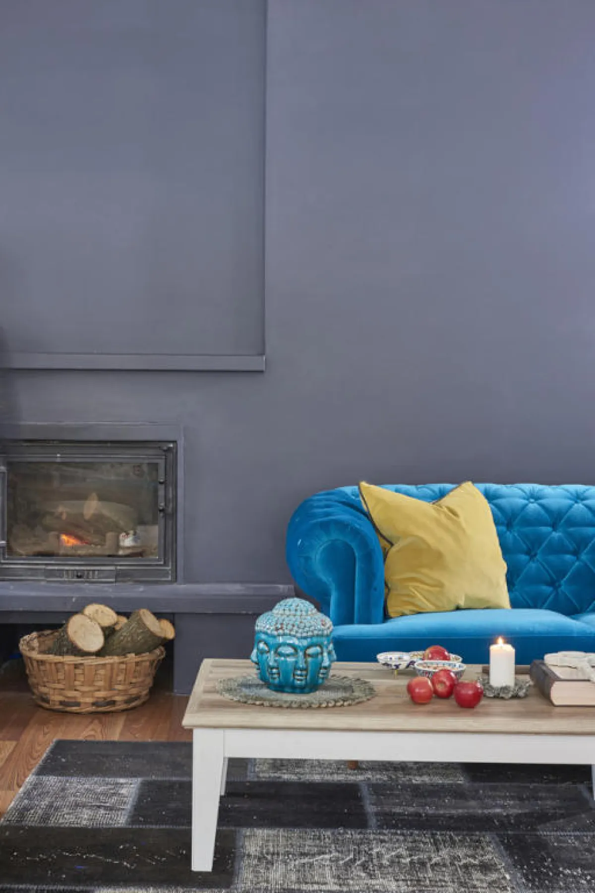 2. في حال وجود عمود في منتصف الجدار، بحيث لا تسمح مساحة الجدار الصغيرة بحمل مكتبة، من المُمكن استغلال هذه الزاوية بوضع مدفأة أنيقة تُصمَّم خصِّيصًا للحائط، مع تمييزه ببراويز مُحمَّلة بصور تذكاريَّة.