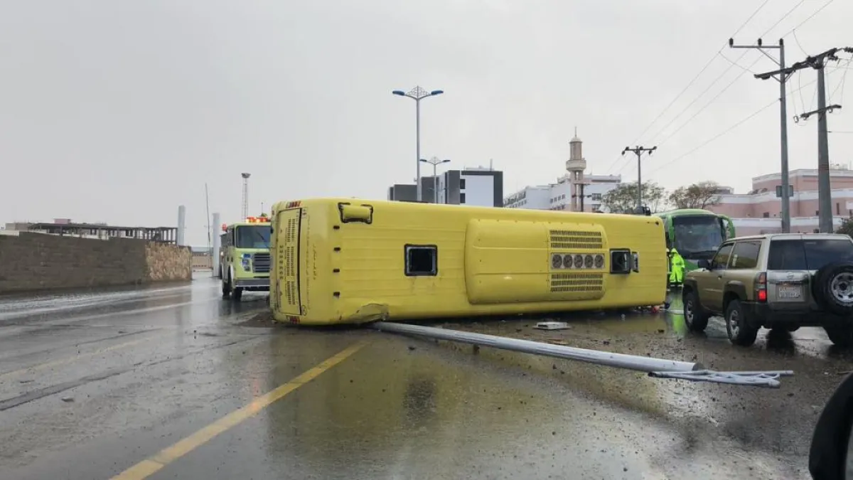تعرَّض عدد من الطالبات إلى إصابات بسبب حادث مروري، وقع لحافلة نقل تابعة لجامعة الملك خالد، أثناء نقلهن اليوم الخميس، وتحديداً عند الساعة 07:10 خلف المستشفى السعودي الألماني في خميس مشيط.