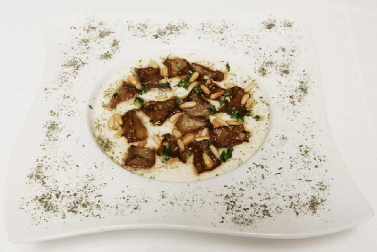 2- يقلى الباذنجان في الزيت النباتي حتى يصبح سمراء اللون. 3- نضع كيلو اللبن الممزوج بالملح والبهارات والبيض النيء والكريما والنعنع اليابس على النار الخفيفة لمدة 15 دقيقة حتى الغليان ومن ثم نضع البادنجان المقلي فوقهم.