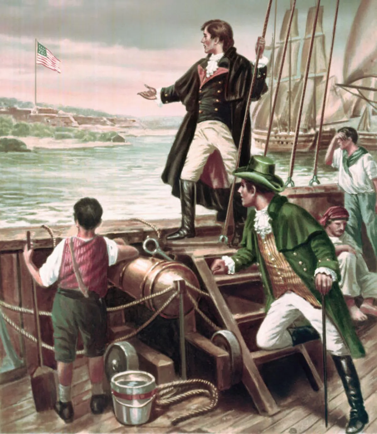 يعود أصل أول نشيد وطني إلى أمريكا عام 1814 بالتحديد، حين كتب المحامي الشاب (فرانسيس سكوت كي) نشيداً تحت عنوان The Star Spangled Banner بعد أن استوحاه من المعركة الطاحنة التي هاجمت فيها القوات البريطانية قوات بلده، وكان يومها على ظهر باخرة عسكرية يراقب ما يحدث، ومن هنا جاءت بعض كلمات النشيد التي تثير الروح القتالية والمستوحاة من أحداث تلك السنة.. أما اللحن فهو من أصل شعبي كان يردده الناس في الأماكن العامة في تلك الأيام، وعلى الرغم من أن الأمريكيين ظلوا يرددون هذا النشيد منذ ذلك الوقت؛ إلا أن الولايات المتحدة الأمريكية لم تعتمده رسمياً كنشيد للدولة إلا في عام 1931.