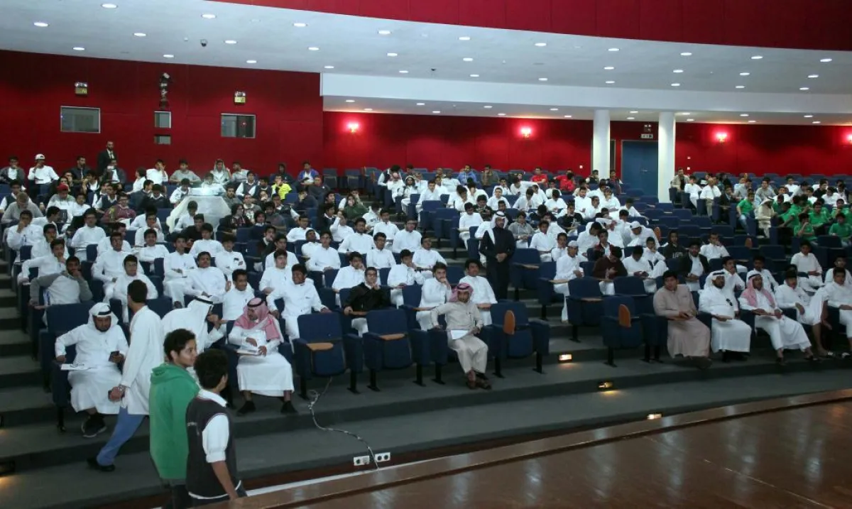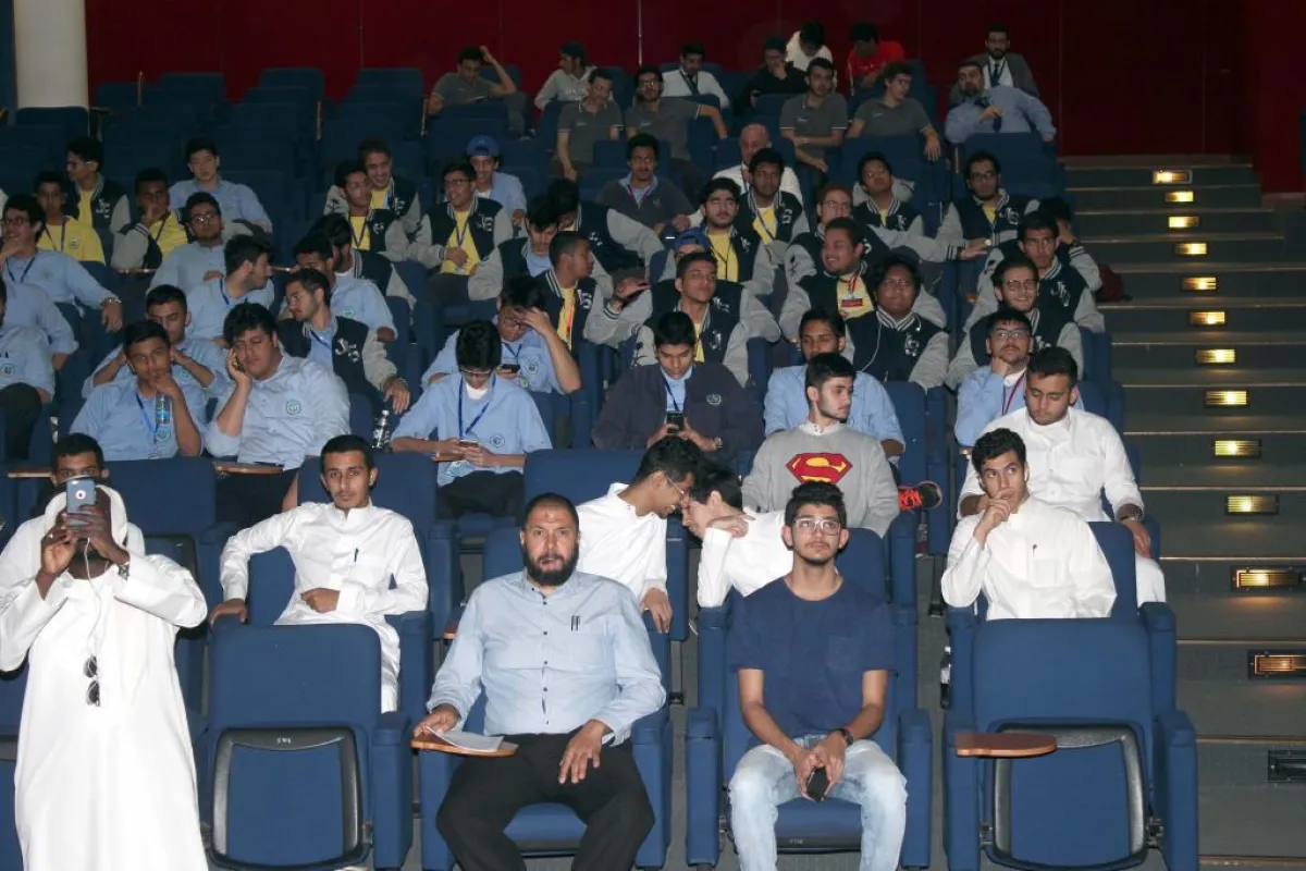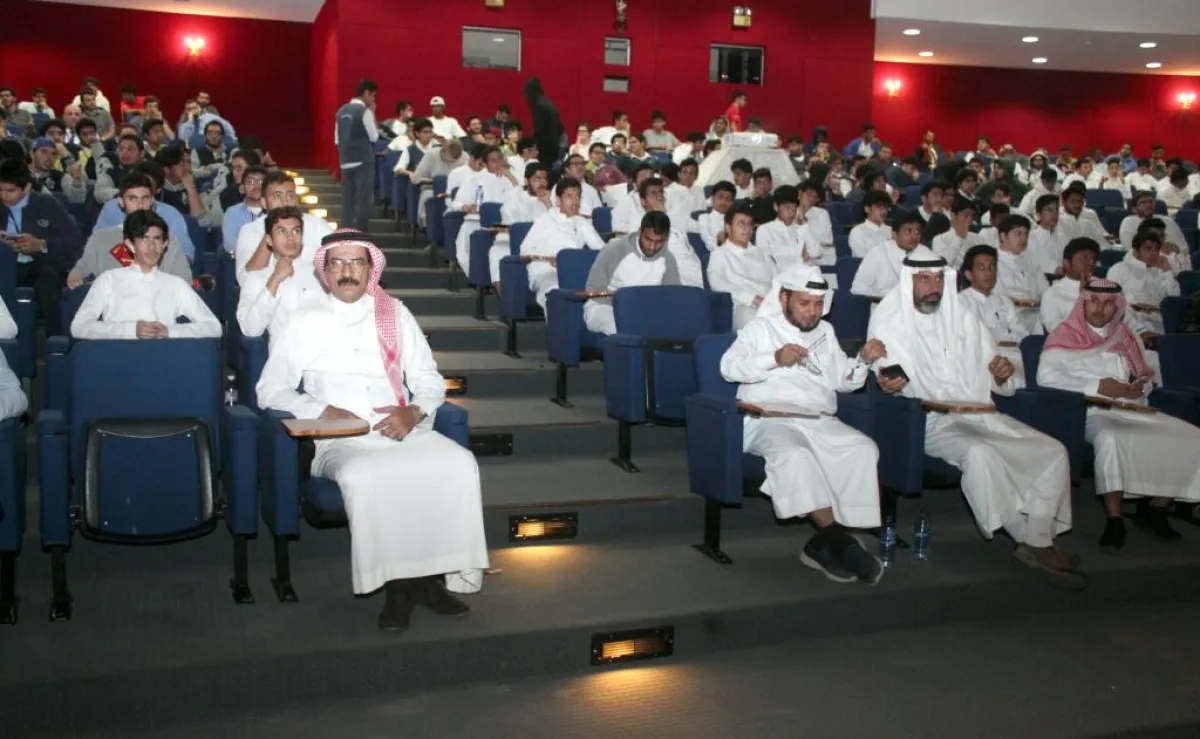 تلقّى د. محمد طيب اتصالاً ثم قال أثناء توجهنا من مكتبه إلى القاعة، إن عدد الحضور في القاعة، التي تتسع لأكثر من ألف شخص، اكتمل، وأن عدد الحضور من الطلّاب في حدود 600 طالب من 16 مدرسة، ويتوقع أن يكون عدد الطالبات في اليوم الثاني المخصص لهن أكثر من ألف طالبة.