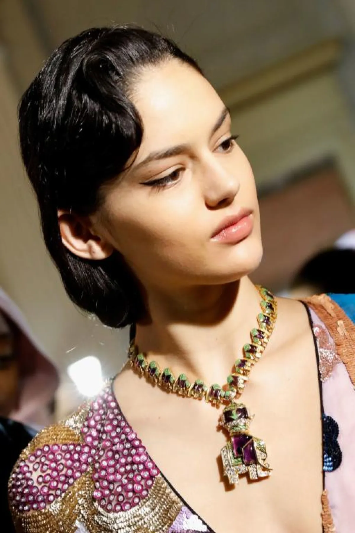 في هذا العرض يمكن القول إنّ خبير التجميل قد استعار بعض ملامح العيون العربية، مستخدمًا الكحل المسحوب باتجاه الصدغين، وظلال العيون الفحمية، وطبقة كثيفة من الماسكرا السوداء، فيما ترك الحاجبين على طبيعتهما مع شيء من التشذيب . كريم الأساس يأخذ لونًا طبيعيًّا مع طبقة خفيفة جدًّا من الوردي المائل للبيج عند الخدين . الشفاه طبيعية مع قليل من اللون الوردي الخفيف .