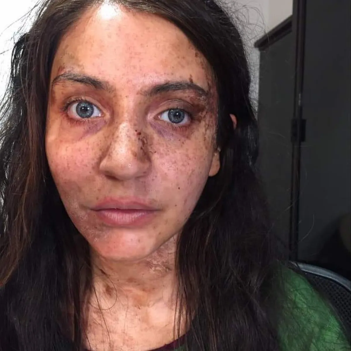 وظهرت شارما البالغة من العمر 29 عامًا بوضع بعض أدوات التجميل التي جعلت وجهها يبدو مرعبًا.