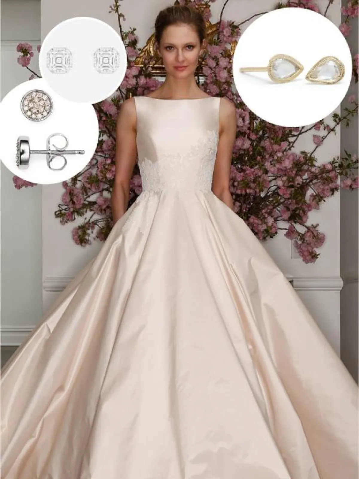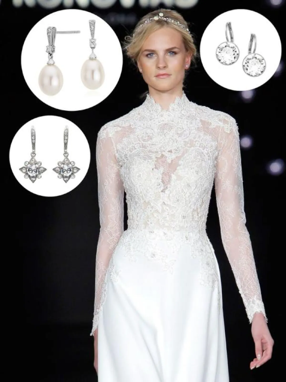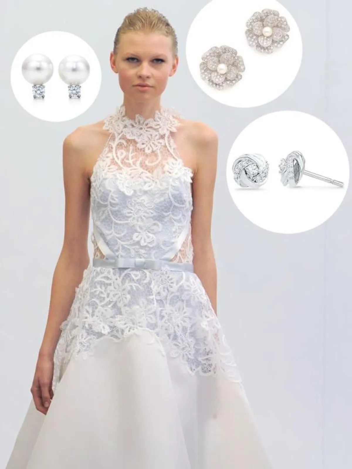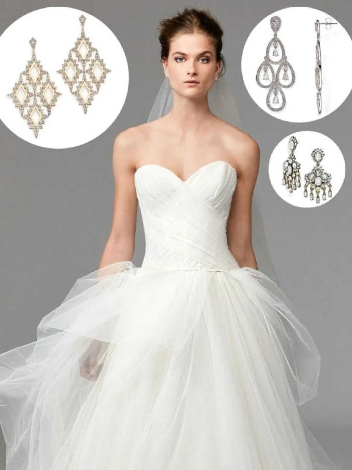 يعتبر الحلق الصغير الذي يحمل الجواهر الثمينة أو اللؤلؤ أو حبات الماس عبر حلقة واحدة الخيار الأفضل لفستان مع قبة عالية .