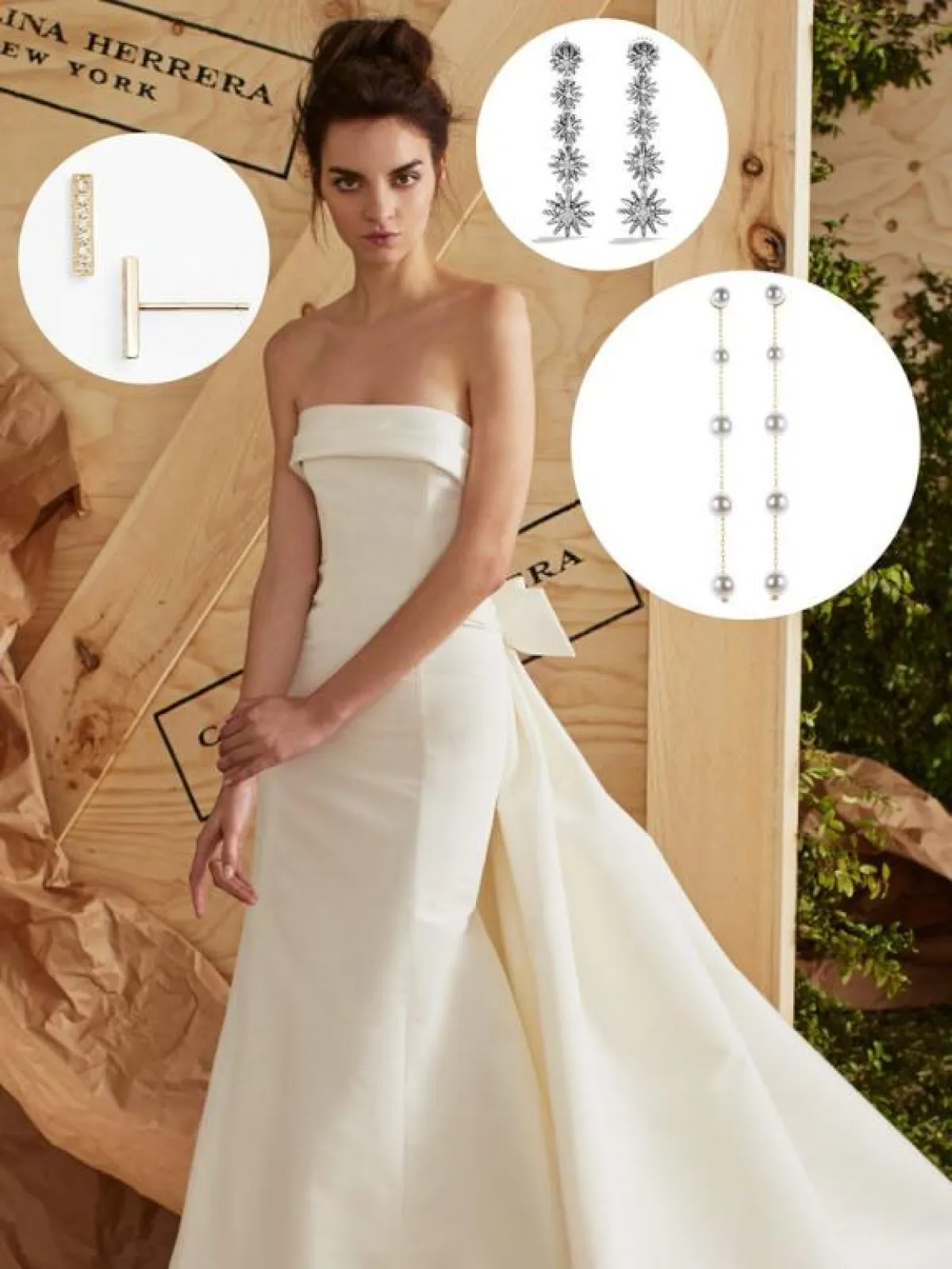 يعتبر الحلق الكبير الحجم الحلق الأفضل للفستان بدون أكمام وهو الاكسسوار الذي سيكمل إطلالة العروس في فستان مماثل .